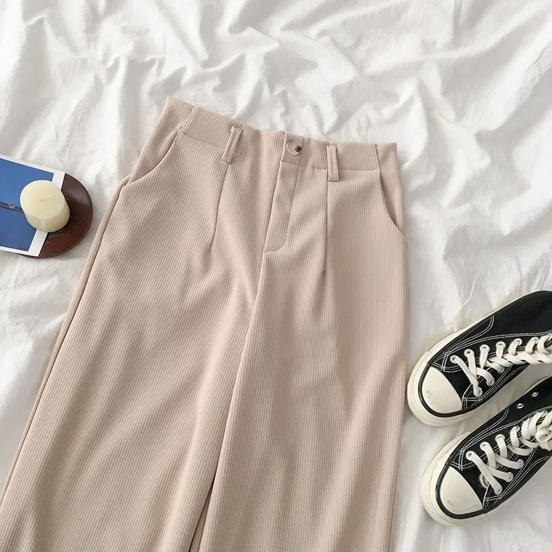 ORIGINAL Formal Office Lady Wear Pant Women Casual Solid High Waist Wide Leg Pants Straight Trouser Femlae K