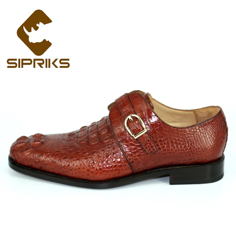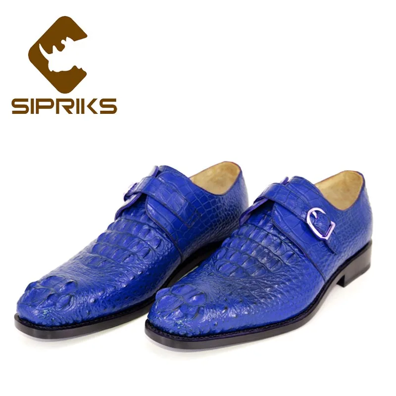 HOT Sale Sipriks Imported Blue Crocodile Skin Leather Shoes Men'S Single Monk Strpa Elegant Black Casual Buc